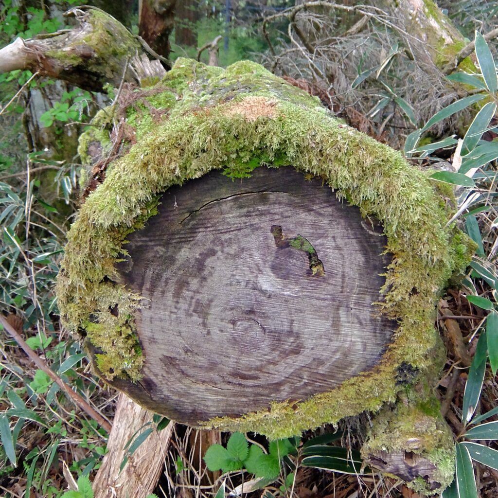 折り返して山頂に向かいますが、丸太の切り口が笑っている顔に見えませんか?最近、なんでも顔に見えてしょうがない。