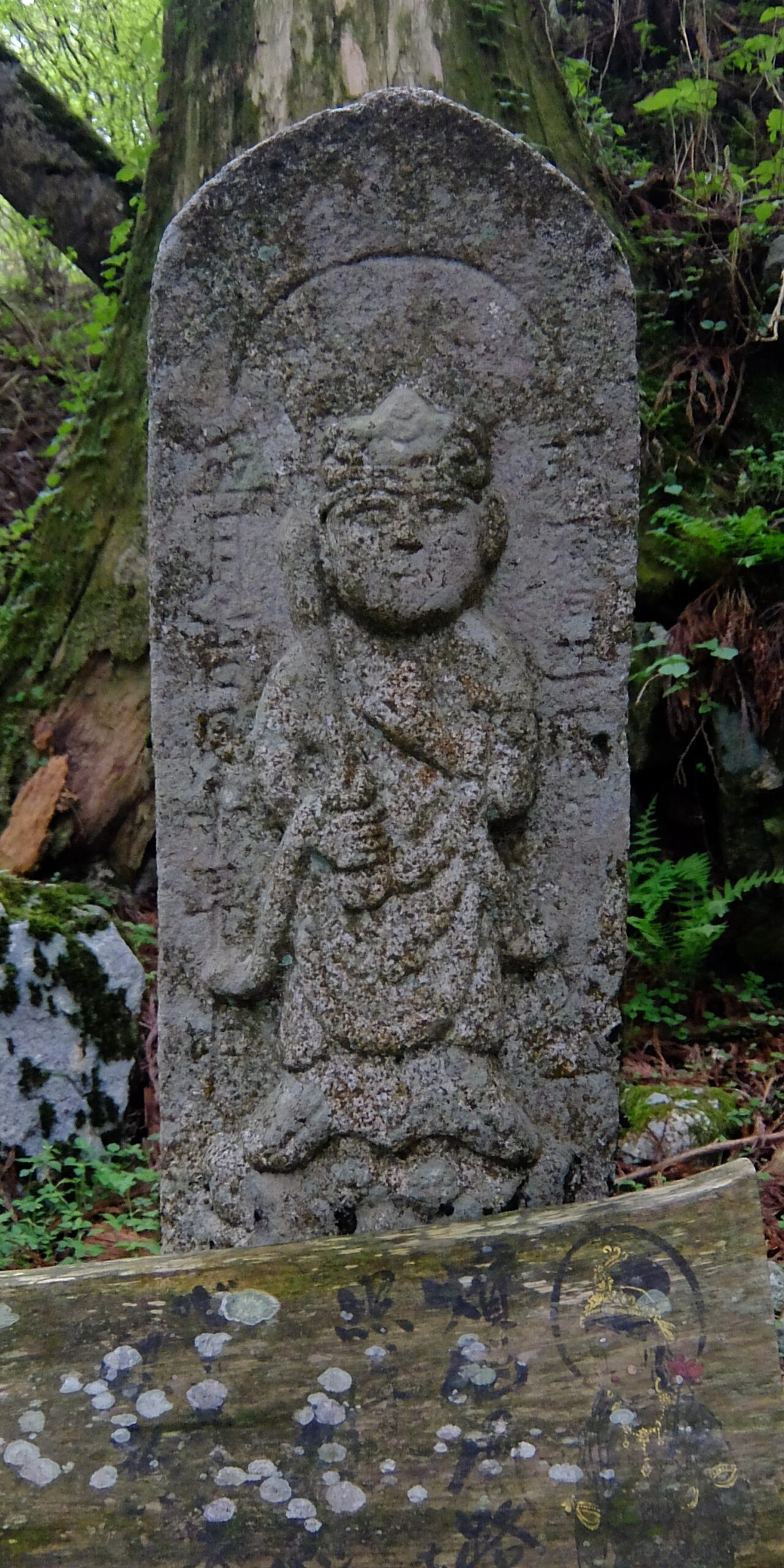 登り口時点で標高は600m以上です。少し肌寒い。この観音様のようなお方は小さくガッツポーズしておられるのでしょうか。
