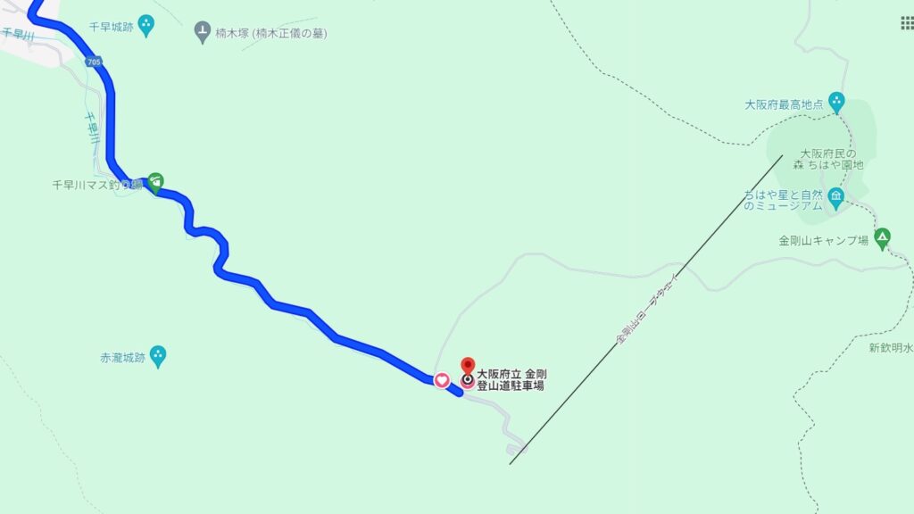 大阪府道(奈良県道)705号をひたすら金剛山へ向かって登ります。この道、金剛山で行き止まりのようです。続きは奈良県五條市からになります。