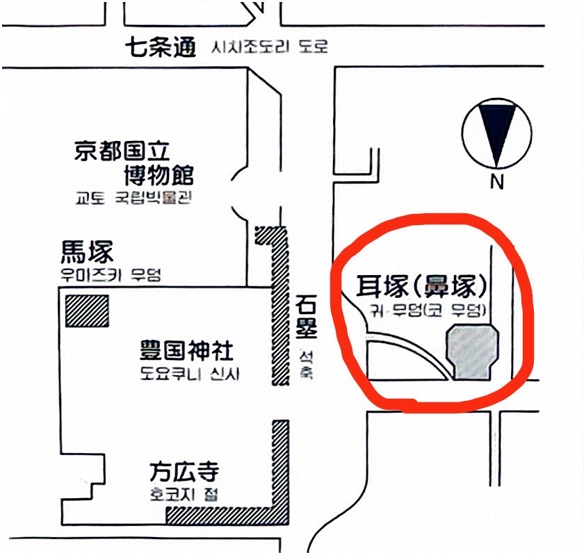 戦功のしるしとして朝鮮軍民男女の鼻や耳をそぎ、塩漬にして日本に持ち帰ってこの地に埋められ、供養の儀がもたれた。
