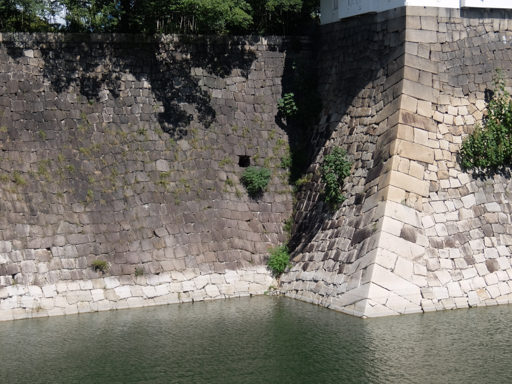 豊臣期においても二の丸堀、つまり二の丸の外堀として大河のように広くつくられたうえに堀の底から石垣が積み上げられていて、北九州のキリシタン大名 大友宗麟(おおともそうりん)は想像を超えたその工事の様子を書きあらわすことにあたり、「百千万のことを一語で申すようなもの」と表現しました。