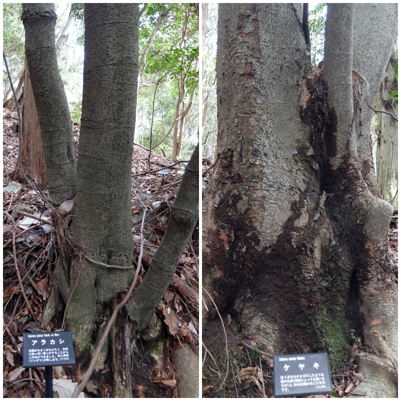 確かにいろいろな木が混在していてその案内札もあるので豊かな森という感じでした。ほかにもウラジロガシとかシラカシもあったと思います。