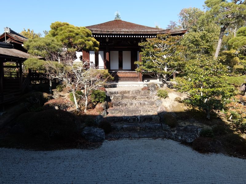 南庭は、白砂を敷き詰めたシンプルなもので、さきほどの勅使門が引き立って見えます。