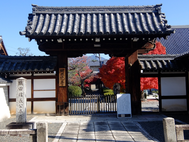 開山の清玉上人(せいぎょくしょうにん)は織田家と縁があり、京における織田家の菩提寺として整備された。正式名は捴見院(そうけんいん)阿弥陀寺。捴見院は織田信長の法名(戒名)。百万遍知恩寺の末寺。大正6年(1917)に勅使が来訪、正一位(しょういちい 諸王および諸臣に与えられる最高位)の位階が追陞(ついしょう)され、「織田信長公本廟所」と公認される。本堂には信長・信忠の木像や討死衆の合祀位牌などが祀られ、毎年6月2日の信長忌に一般公開されている。
