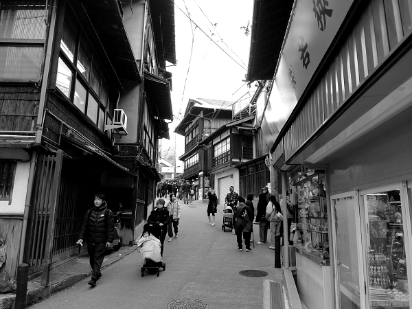 温泉街から1㎞ほども登ったところにあるホテルに着いたときには14時を回っていて、それでもチェックインは15時からだというので車だけ置かせてもらい、再び歩いて温泉街へと下りていく。