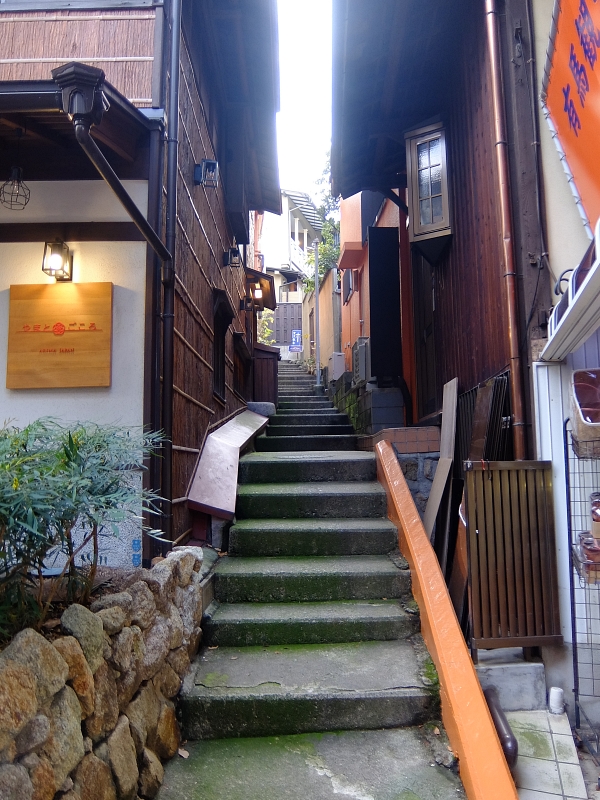 さて今度は上り坂になっている湯本坂というところへ入っていく。個性的なお店が並ぶなか、右にも左にもさらに細い路地が伸びていて面白い。