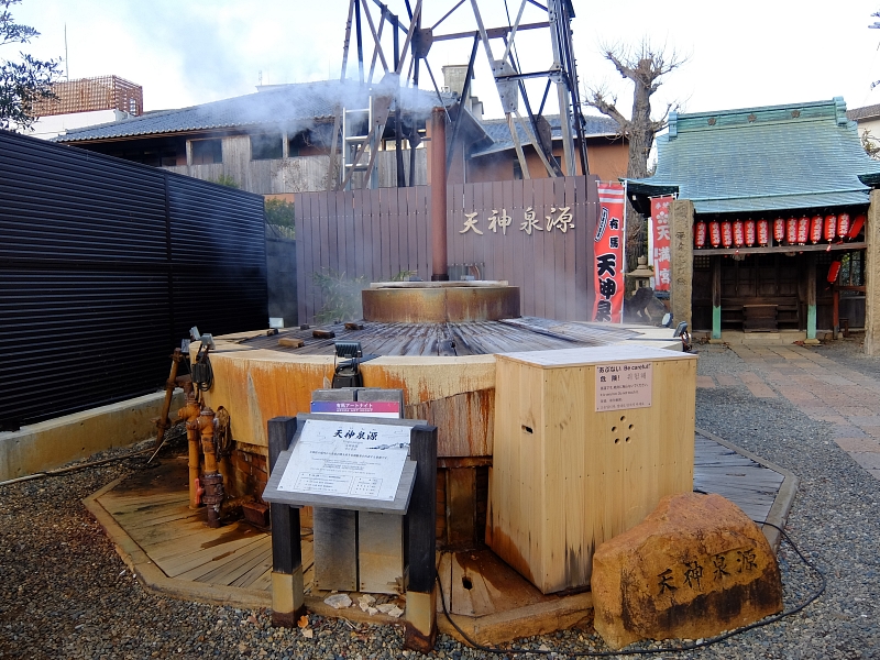 さて、少し陽が陰ってきたので宿へ向かおうとすると、「温泉たまご ラストでーす」との呼び声。天神泉源との表記があって、天神さんの境内に店があるらしい。(冒頭の写真参照)