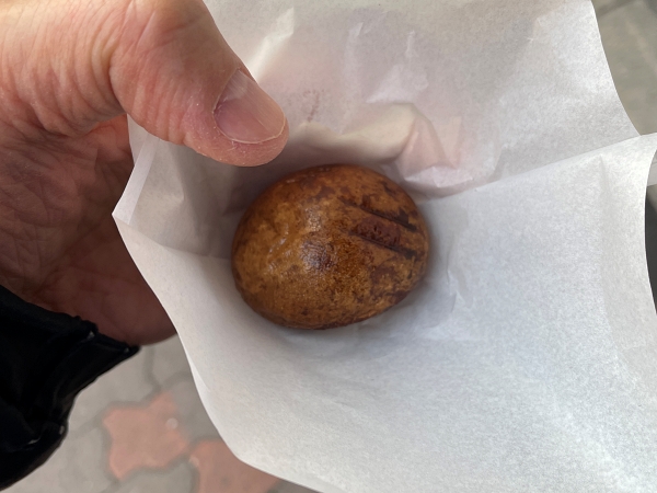 「ごちそうさま~」と店を出たらすぐに近くの行列に並んで「かりんとうまんじゅう」なるものを食べてみる。おひとつ100円。