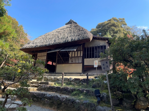 傘亭と時雨亭という茶室は土間廊下でつながっている。いずれも茅葺で竈土(くど)がしつらえてある。