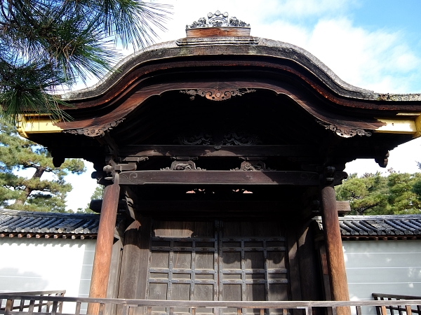 この勅使門は、なんと慶長18年(1613)頃に御所の内裏西に建立された御唐門を後水尾天皇の命により寛永17年(1640)に移築したもの。