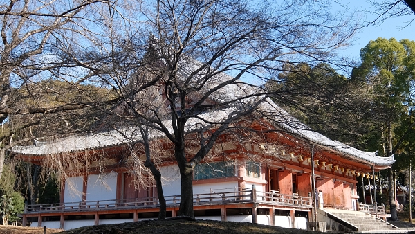 桁行*七間、梁間*五間、一重、入母屋造*本瓦葺で、室町時代に焼失していましたが、桃山時代に豊臣秀吉・秀頼により復興されました。
