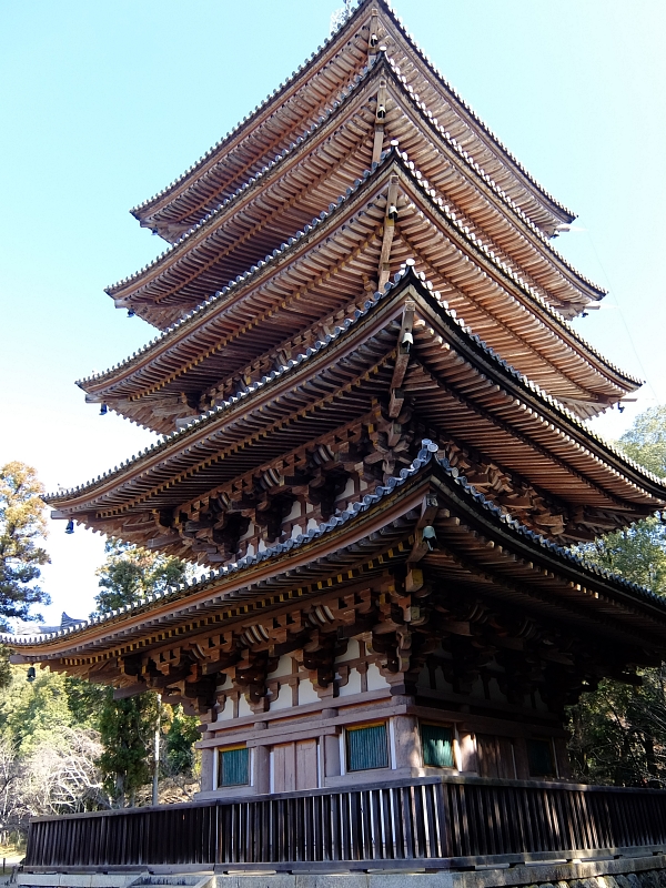 現存の五重塔では、法隆寺、室生寺(むろうじ)に次ぐ古塔です。